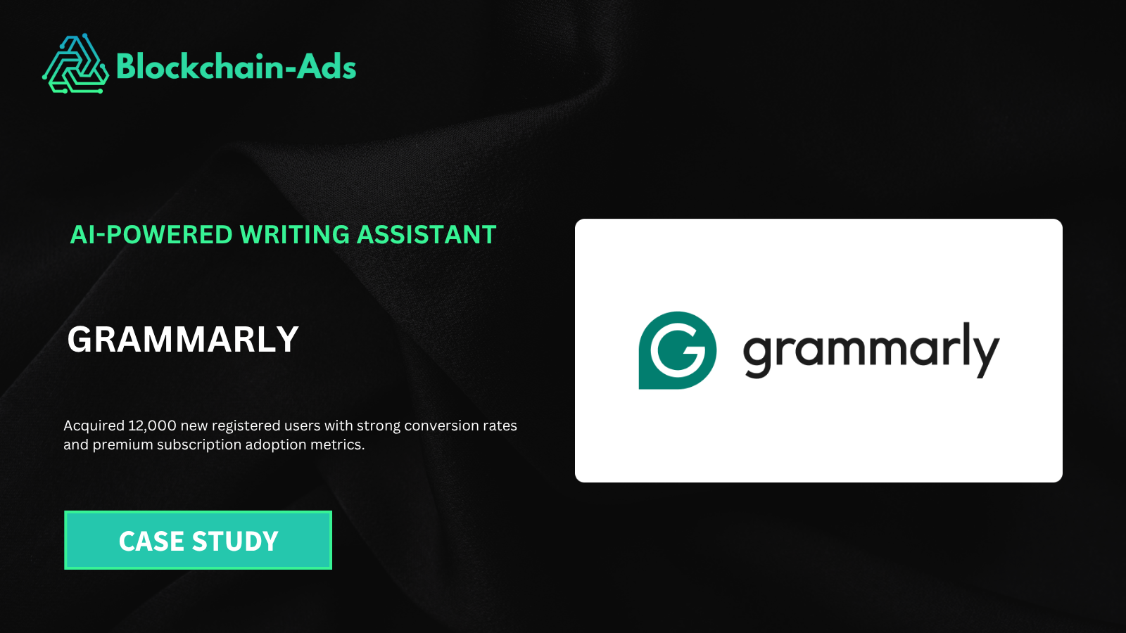 Grammarly acquired 12,000 new registered users with 3.5% conversion rate and 9.8× ROAS through precise AI Creator and Workplace Productivity targeting.