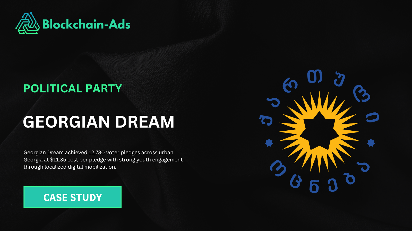 Georgian Dream achieved 12,780 voter pledges across urban Georgia at $11.35 cost per pledge with strong youth engagement through localized digital mobilization.