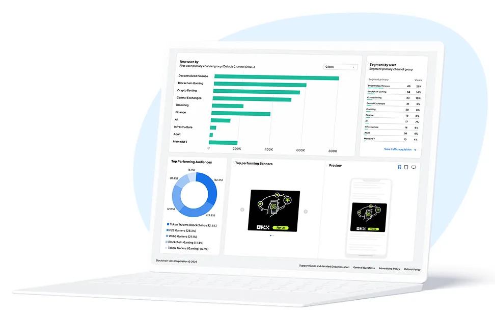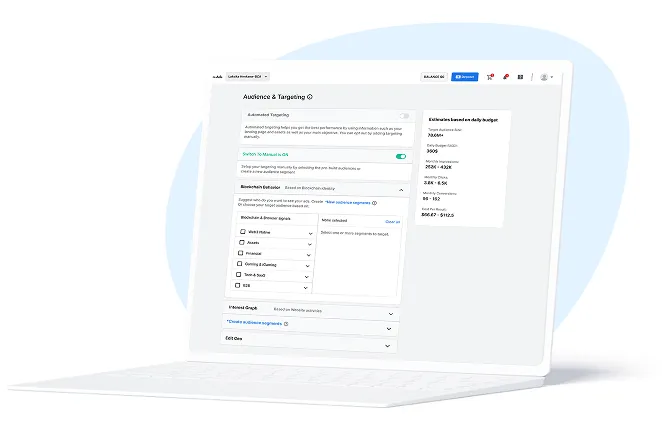 Blockchain-Ads ofrece una segmentación granular, que incluye tenencias específicas de tokens financieros, interacciones de protocolo y regiones geográficas en más de 195 países.