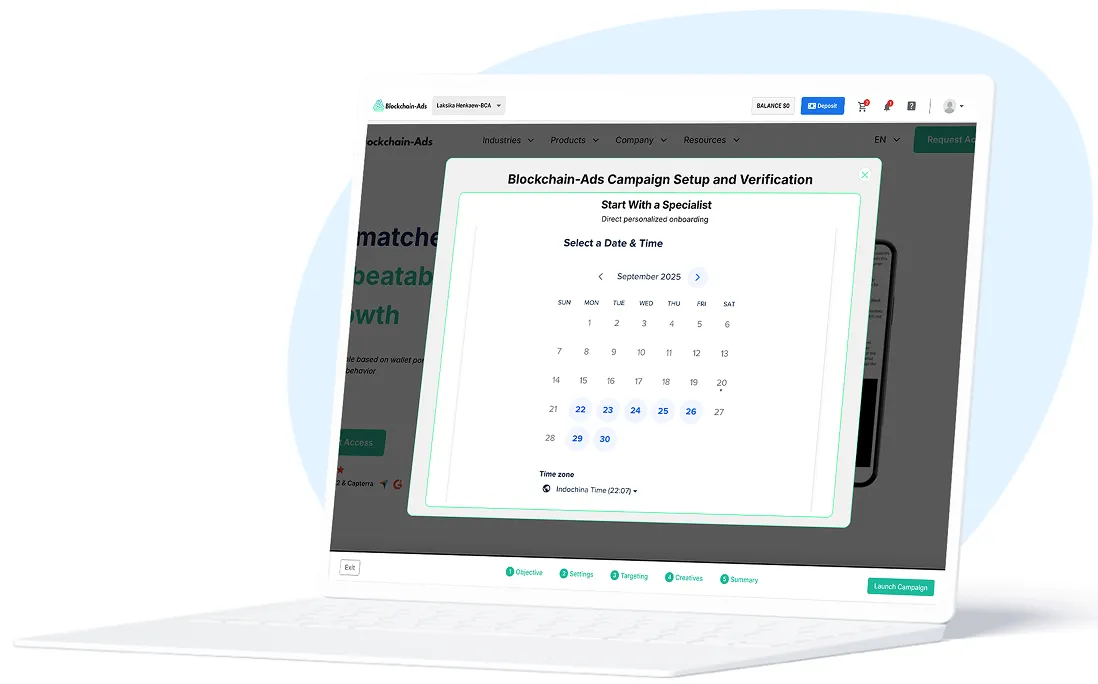Ofrezca campañas basadas en datos que cumplan con las normas y atraigan a los inversores, aumenten las transacciones y escalen los productos financieros con Blockchain-Ads.