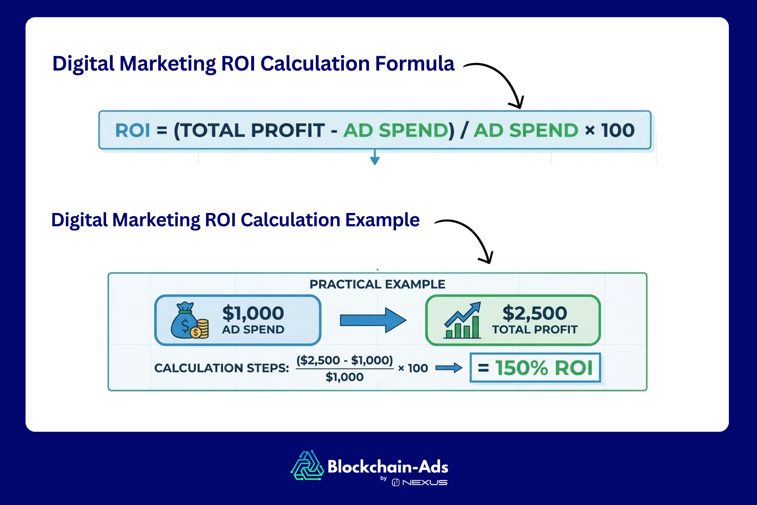 Cuando usas una plataforma como Blockchain-Ads, este cálculo se vuelve más preciso porque tu "Beneficio Total" puede estar vinculado a transacciones reales y verificables en lugar de suposiciones. Blockchain-Ads utiliza atribución verificada en blockchain y rastreo determinístico para conectar impresiones, clics y eventos en cadena directamente con los ingresos. De esta manera, sabes qué campañas, audiencias y creatividades realmente generaron beneficio en lugar de confiar en suposiciones de último clic.