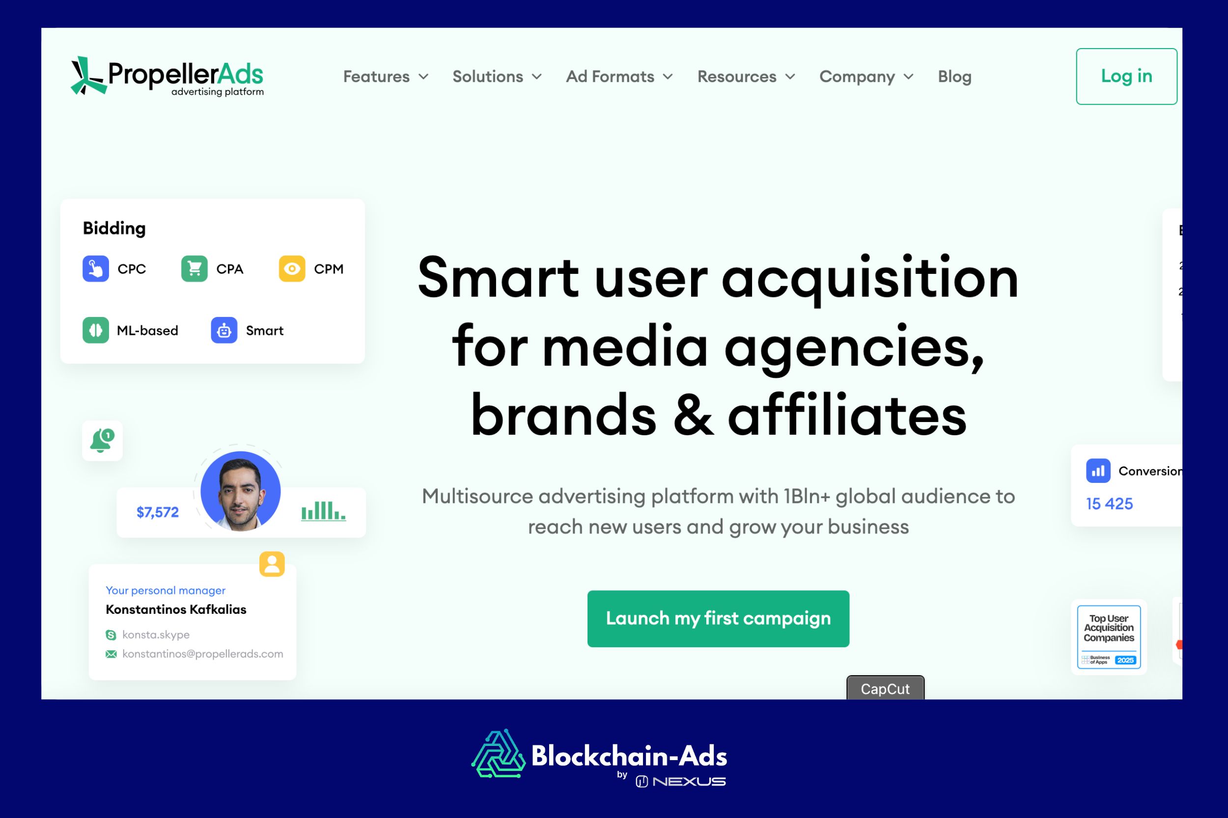 Propeller Ads는 대규모 성능을 위해 구축된 대용량 멀티소스 광고 플랫폼입니다. 수백만 명의 사용자, 특히 제휴사, 리드 생성자 및 모바일 광고주가 사용합니다. 자동화, 사기 방지 기술 및 형식 전반의 유연성으로 인해 이 목록에 포함됩니다.