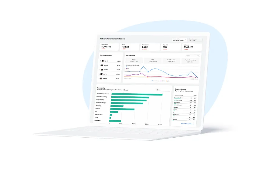 Blockchain-Ads 네트워크는 대규모 성장 및 대규모 사용자 확보 캠페인을 위해 구축되었으며 충분한 예산이 필요한 대규모 데이터 세트에서 최고의 성능을 발휘합니다.
