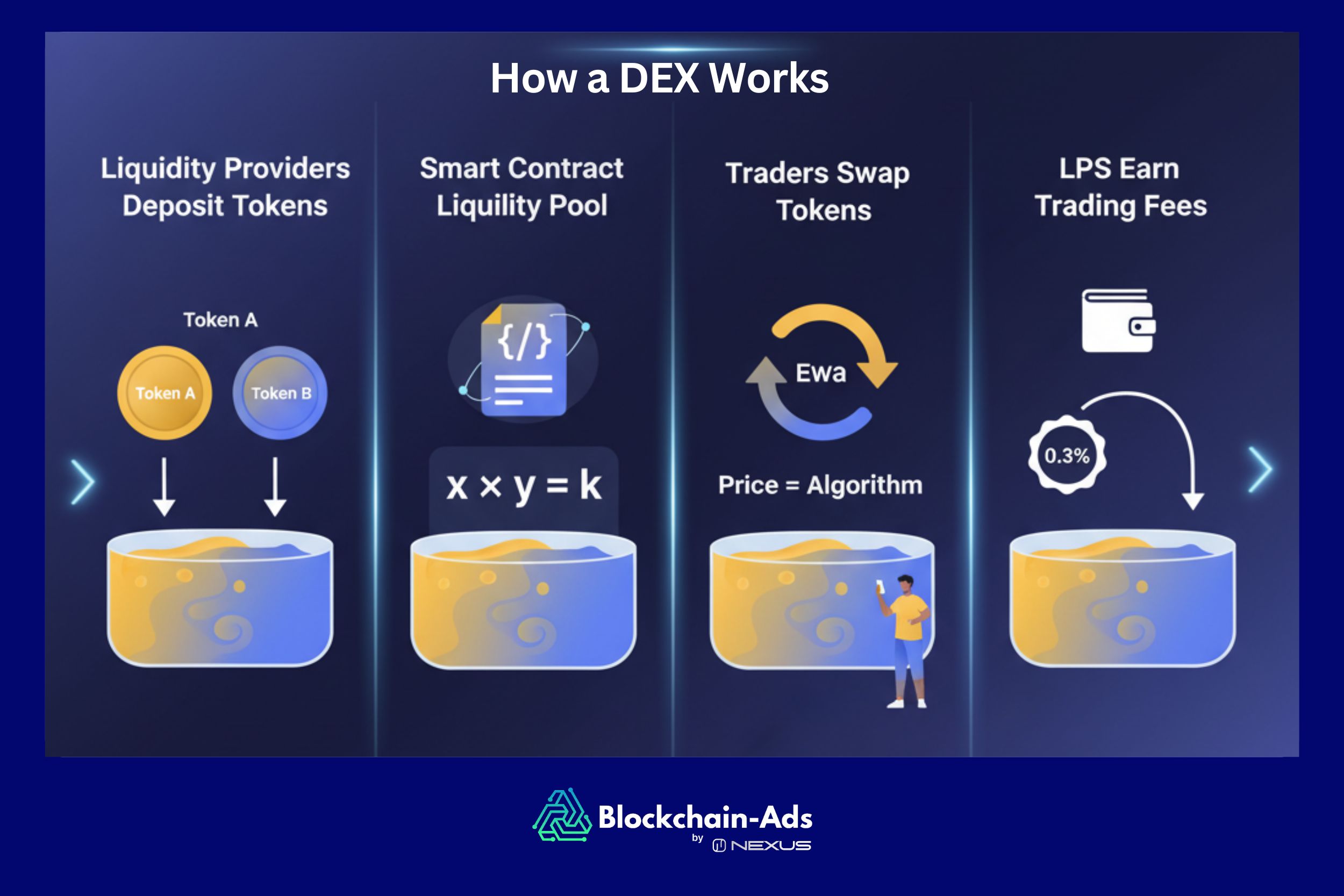 This guide will cover the top ten decentralized exchanges, the benefits and drawbacks of listing on a decentralized exchange. It’ll also discuss how you can promote your token to grow liquidity, because unlike centralized exchanges, DEXs do not promote newly listed tokens. Token issuers must handle the marketing of their digital assets themselves. One of the best ways to do this is through ad networks, such as Blockchain-Ads.