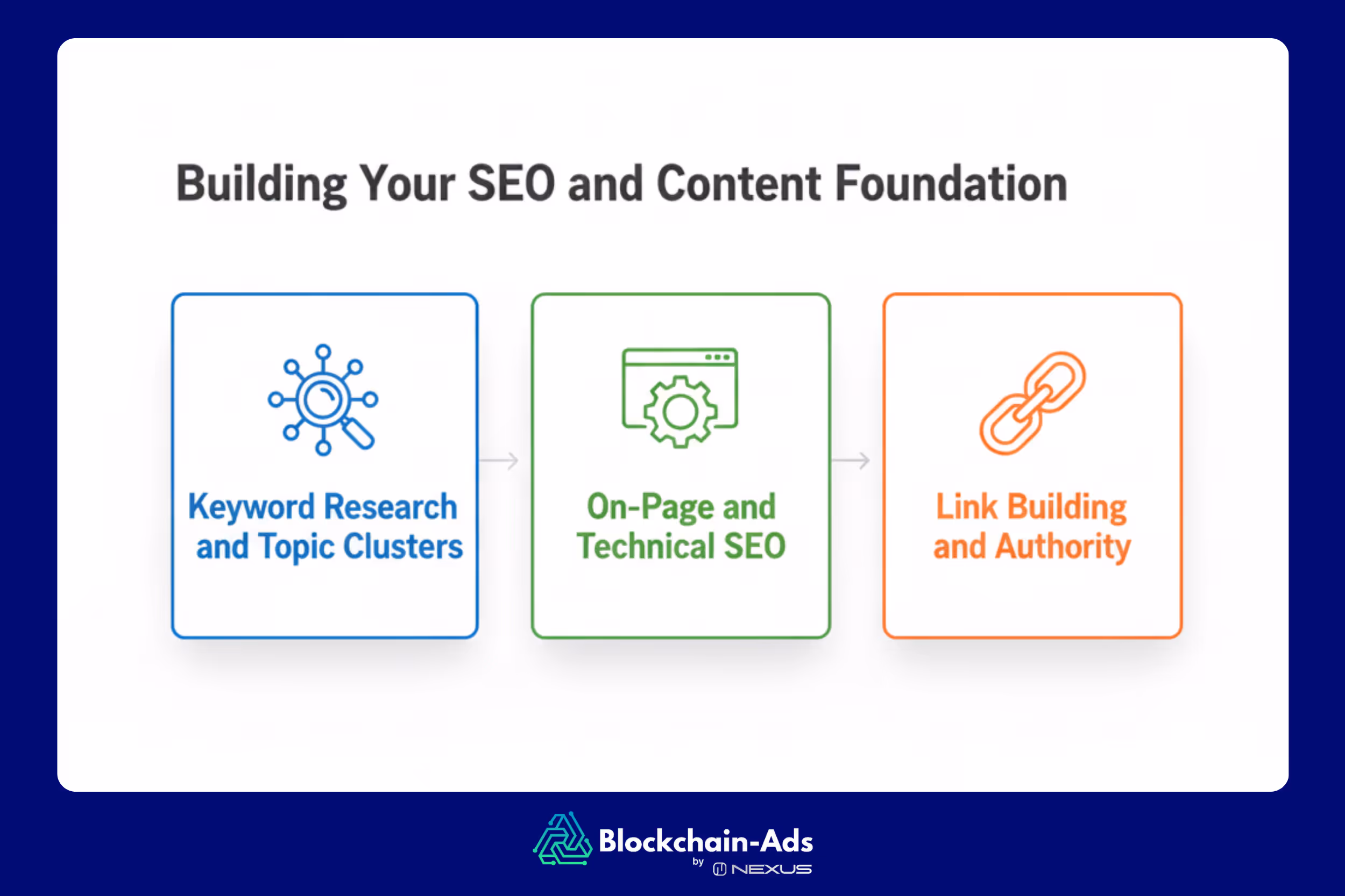 On-Page & Technical SEO – Mobile-first design, fast load times, structured data, internal linking.
