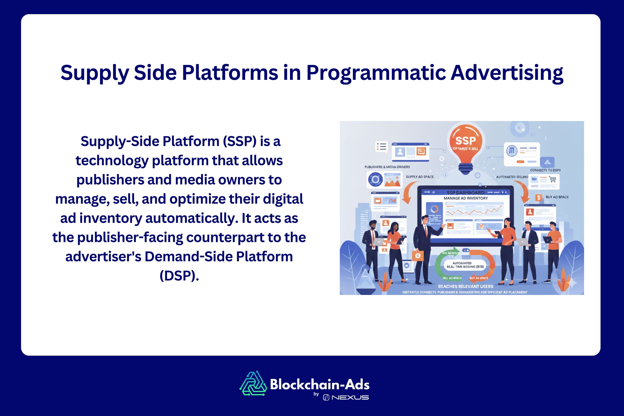 The SSPs are supply-side platforms. They’re what the tech publishers use to sell their digital ad inventory in real time. While a DSP helps advertisers buy ad space, an SSP helps publishers manage, price, and deliver those advertising spaces efficiently.