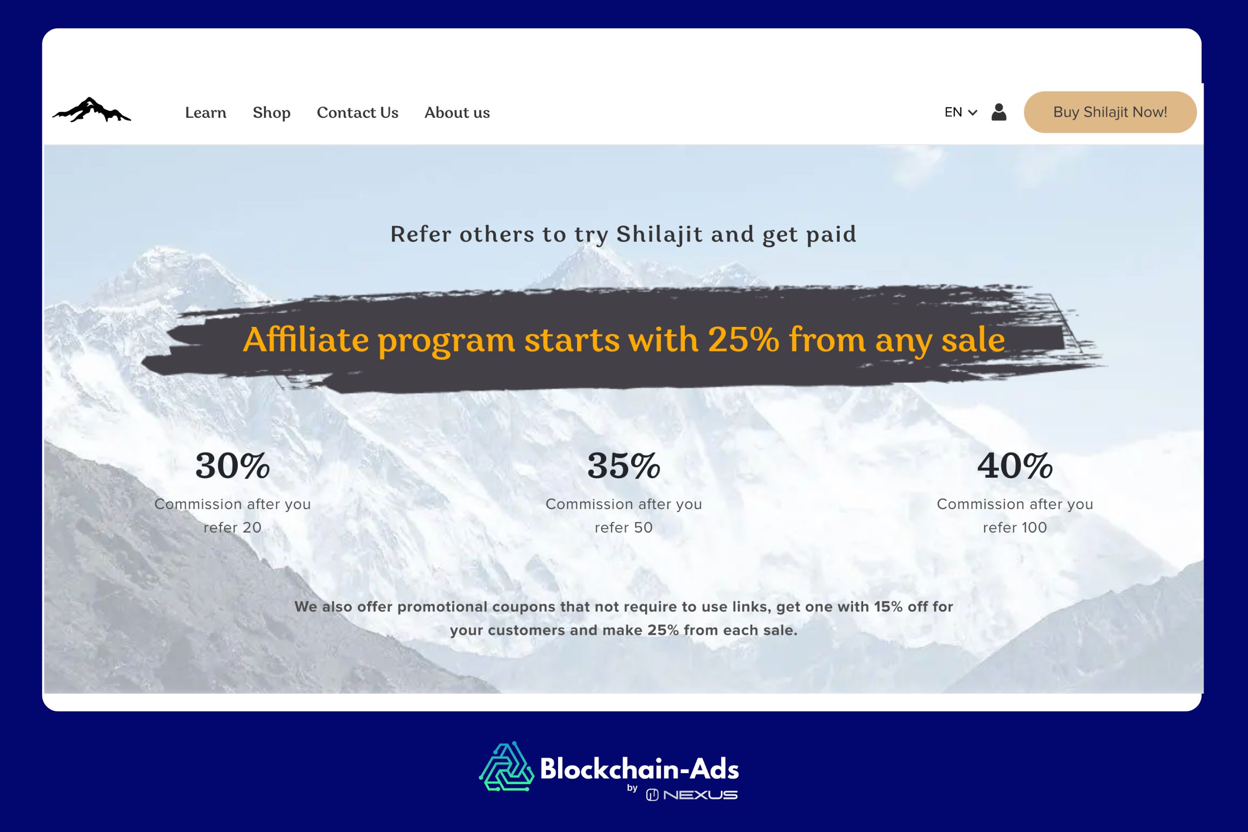 1. Blockchain-Ads Partner Program – 10–20% recurring commission on referrals