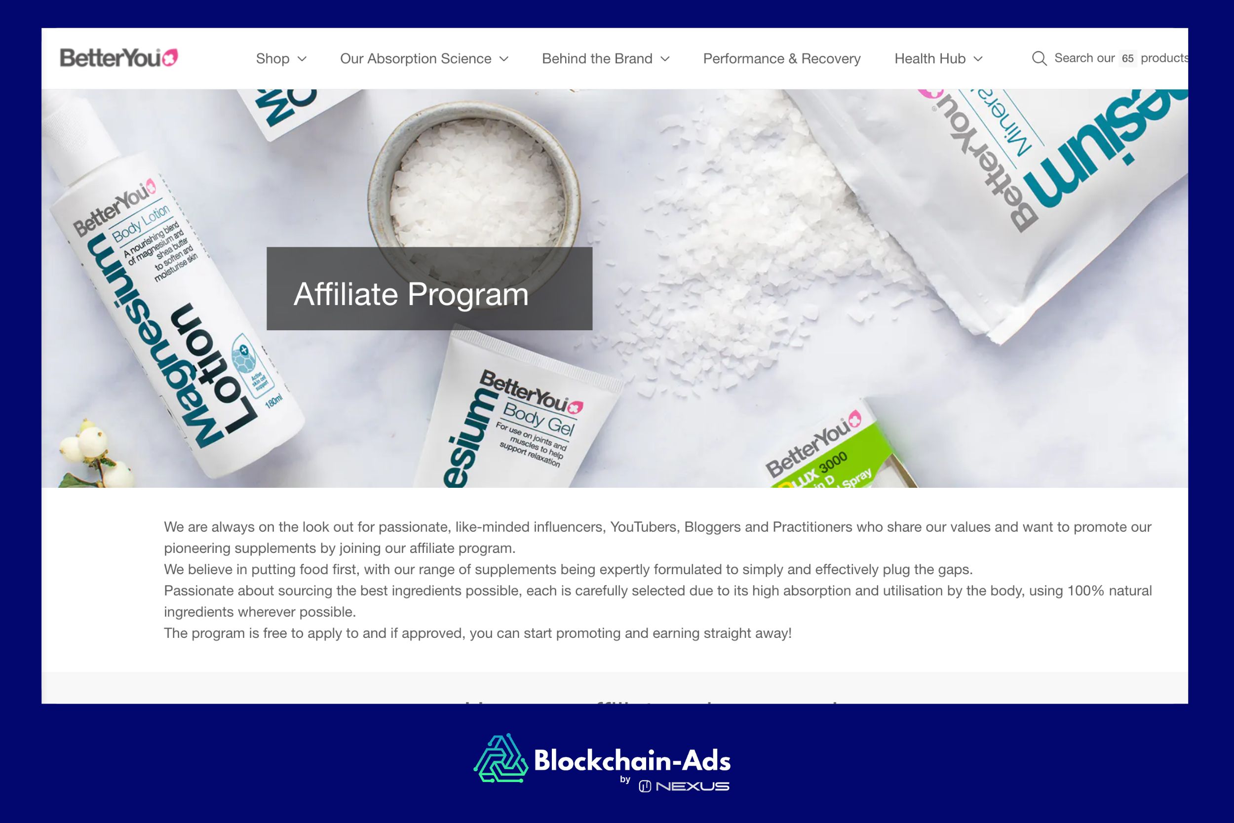 - BetterYou affiliate program - Up to 10% commission on net sales