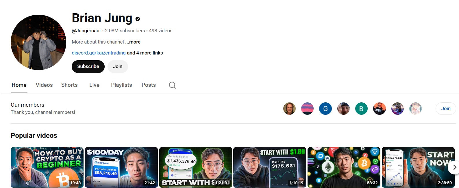 Brian Jung uses his crypto YouTube channel to share his experience as an entrepreneur and investor to discuss developments in crypto, share market analysis, provide business and financial tips, and review trends related to personal finance.