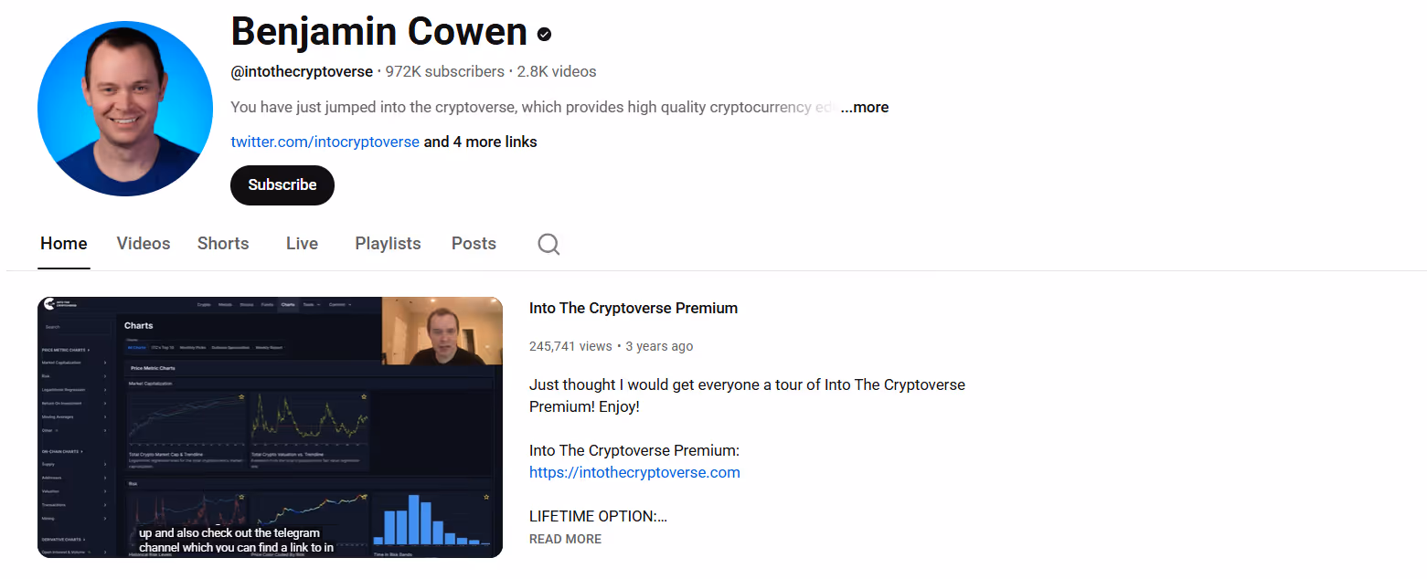 Benjamin Cowen applies his quantitative academic background (PhD in Engineering) to analyze crypto price charts and market data to better understand and forecast trends. He utilizes custom indicators and models designed specifically for crypto.