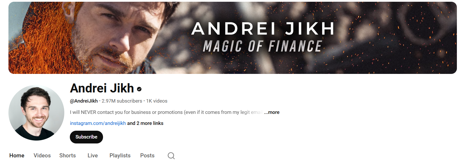 Andrei Jikh is a prominent YouTuber covering personal finance, investing, and cryptocurrency education. The channel is known for its polished and engaging style, combining educational content with practical advice on building wealth through investing.