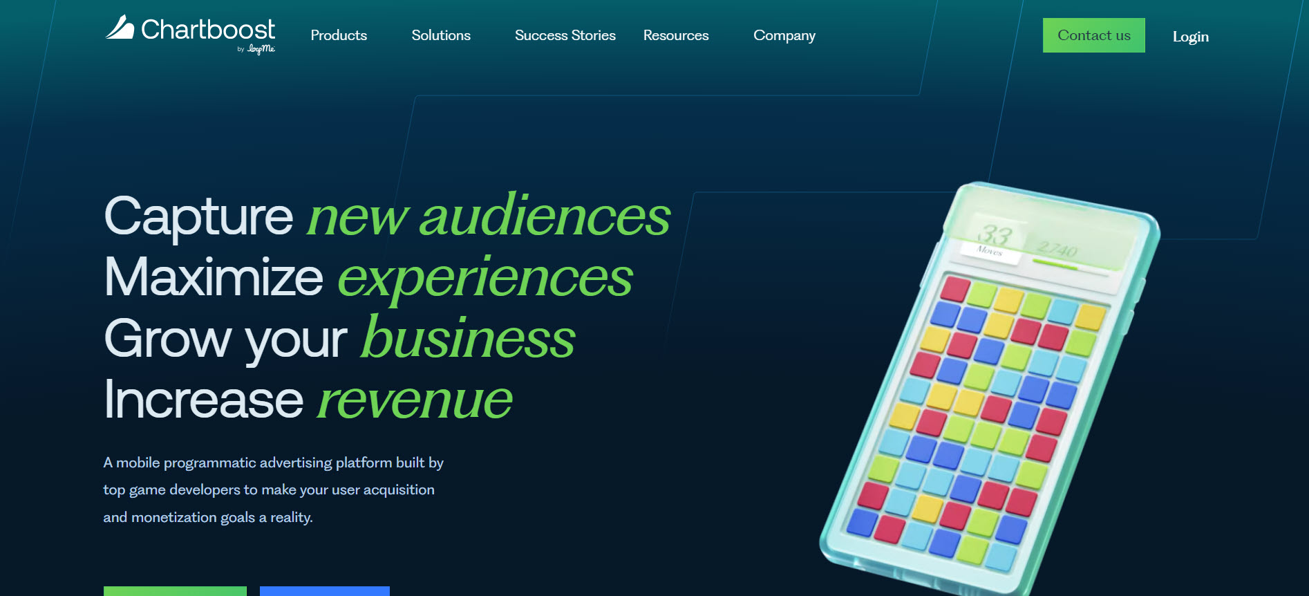 Chartboost — ведущая платформа мобильной рекламы, предназначенная для помощи разработчикам игр в привлечении игроков и эффективной монетизации их приложений. Она предлагает набор рекламных решений, включая интерстициальную рекламу, видеорекламу с вознаграждением и играбельную рекламу, которые очень эффективны для стимулирования пользовательского вовлечения и увеличения доходов приложений. Торговая площадка реального времени Chartboost соединяет рекламодателей с премиальным внутриприложенческим инвентарем, делая ее жизнеспособным вариантом для кампаний привлечения пользователей.